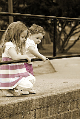 Of course at Kelsey’s 1 yr we had to take some pictures of her with her big sister Kylie. These two girls could not be more different. From the looks to the personality. It is going to be so fun to watch these two grow up together. Kylie turned 5 in March, making her and Kelsey similar to me and my sister and the differences between two girls four years apart could not be more alike. Sorry Kylie but I will most likely be siding with Kelsey! The one big difference is I also had a brother 21 months younger than me…hmmm…now that would be interesting! hehe 🙂